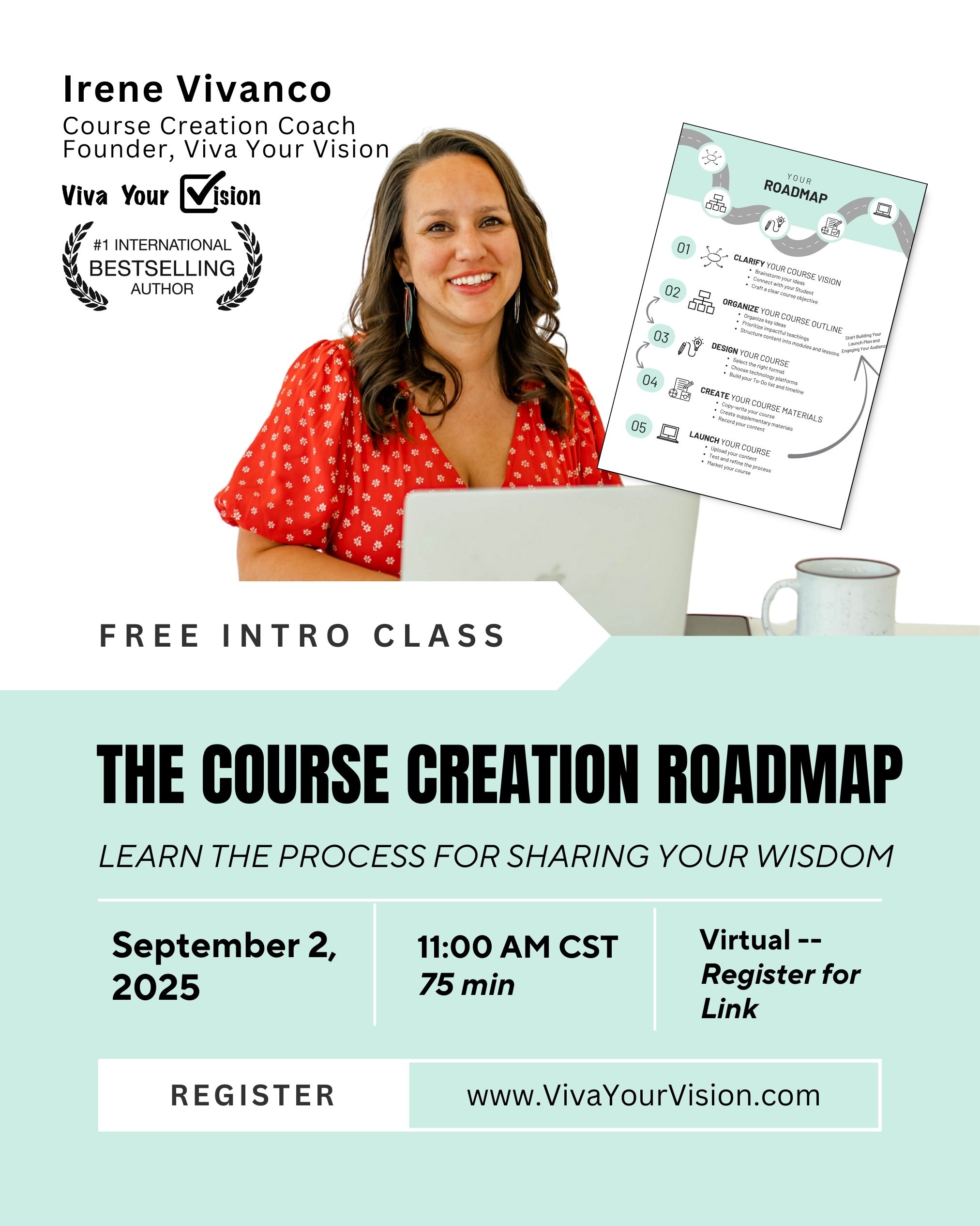 Join me for a free workshop on Sept 2 where I’ll walk you through the Course Creation Roadmap — your step-by-step guide to turning your wisdom into a course.